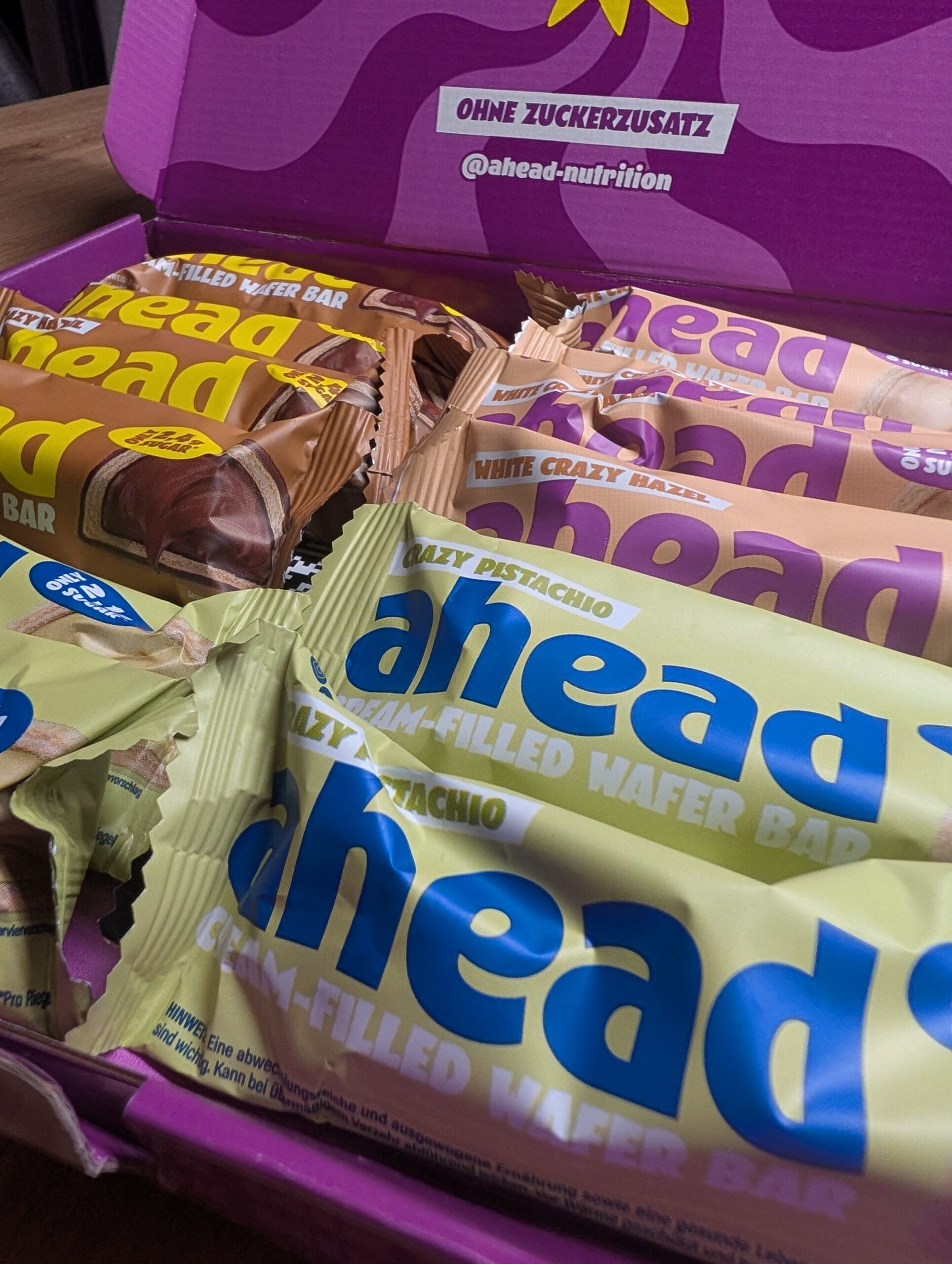 Für meinen Produkttest durfte ich mich durch die ahead Cream Filled Wafer Bar Mix Box * probieren – und ich war sofort begeistert. Die Riegel sind knusprig, cremig und geschmacklich erstaunlich gut gelungen. Besonders der helle „Happy Hazel Nut“ hat mich überzeugt: angenehm nussig, ausgewogen süß und für mich sogar besser als viele klassische Schokoriegel. Ein vielversprechender Einstieg in die Welt der ahead Produkte ohne Reue und ein Vorgeschmack auf die weiteren Snacks und Drinks, die ich ebenfalls testen durfte.