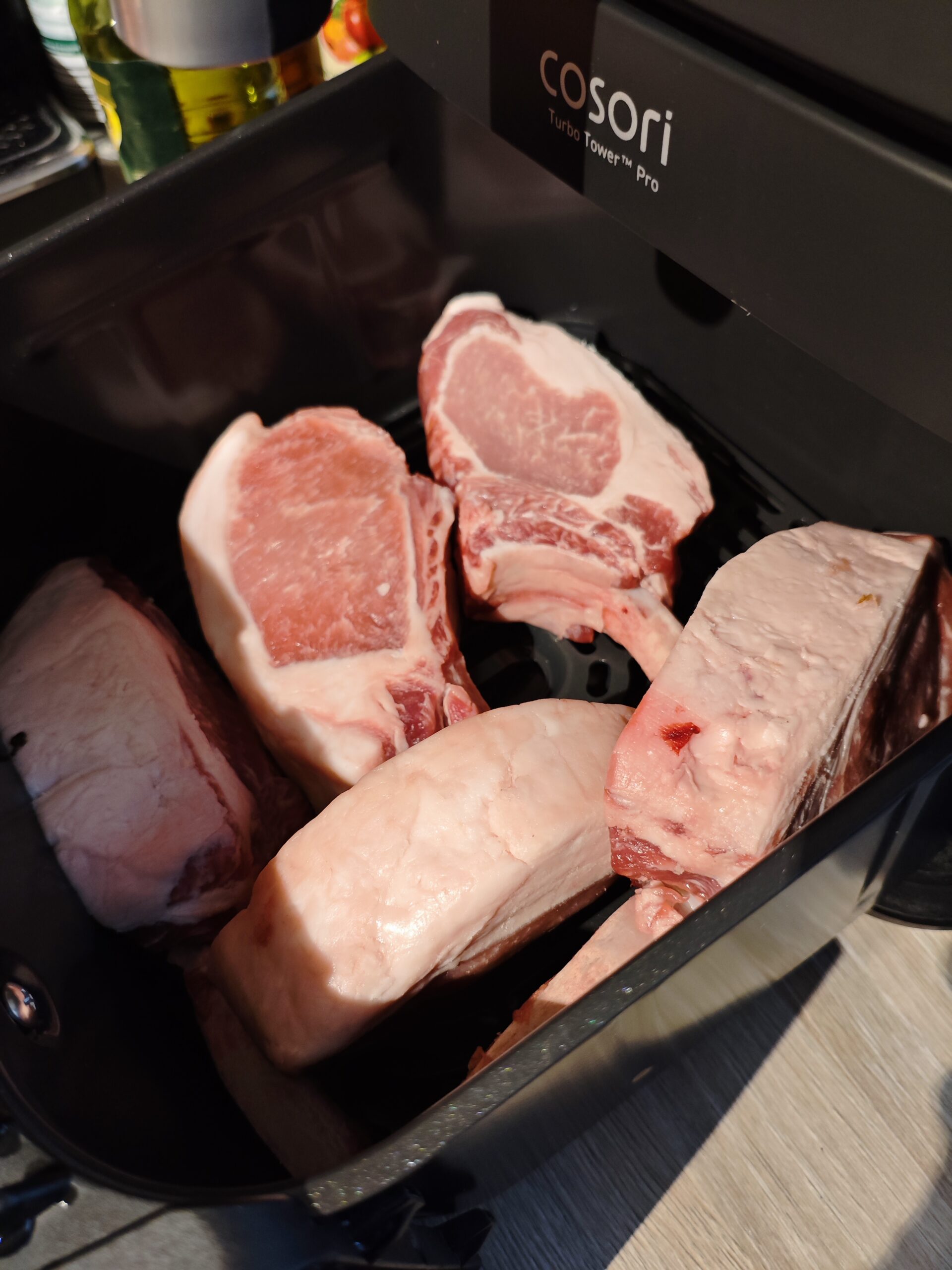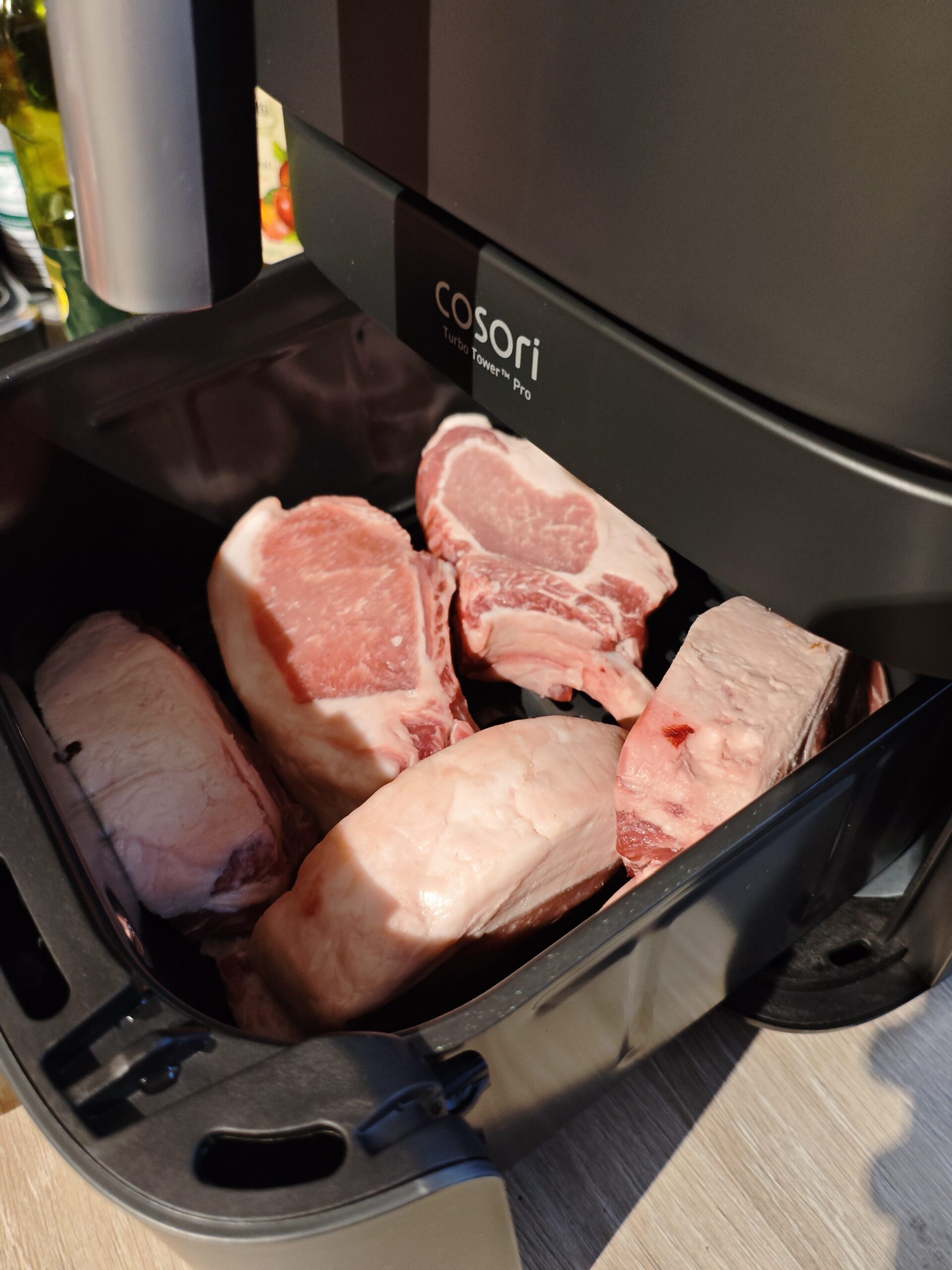 Steak? Ja! Vorheizen, nach 3–4 Minuten das Steak hineingeben und wie auf einem Grill wenden. Es wird außen knusprig und innen zart rosa, so wie die meisten es gerne essen. Auch andere Fleischstücke sind kein Problem. Sogar Fleisch mit Fettrand wird knusprig und lecker. Die Zubereitung gelingt zügig, auch wenn die Turbo Tower Pro Smart nicht die schnellste Heißluftfritteuse ist, die ich bisher hatte.