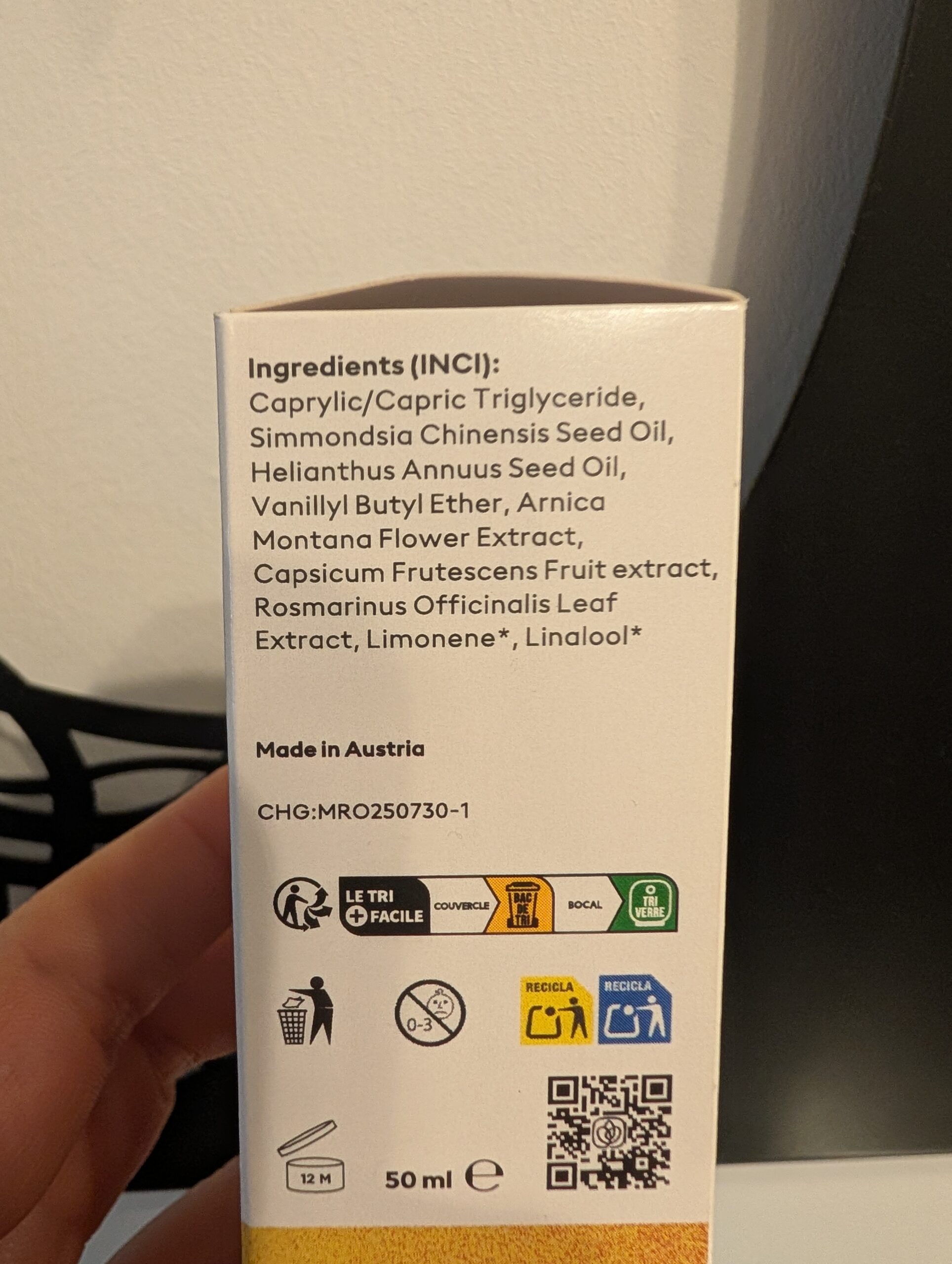 Das Health Routine Muscle Relief Oil setzt auf ausgewählte Inhaltsstoffe, die auf der Haut eine wärmende Wirkung entfalten. Besonders hervorzuheben ist der enthaltene Chili-Extrakt, der für das Wärmegefühl verantwortlich ist. Insgesamt macht die Formulierung einen hochwertigen und gut durchdachten Eindruck. Das Öl lässt sich gut verteilen, zieht relativ schnell ein und hinterlässt keinen stark fettigen Film. Der Duft ist dezent und natürlich gehalten – angenehm und nicht aufdringlich.