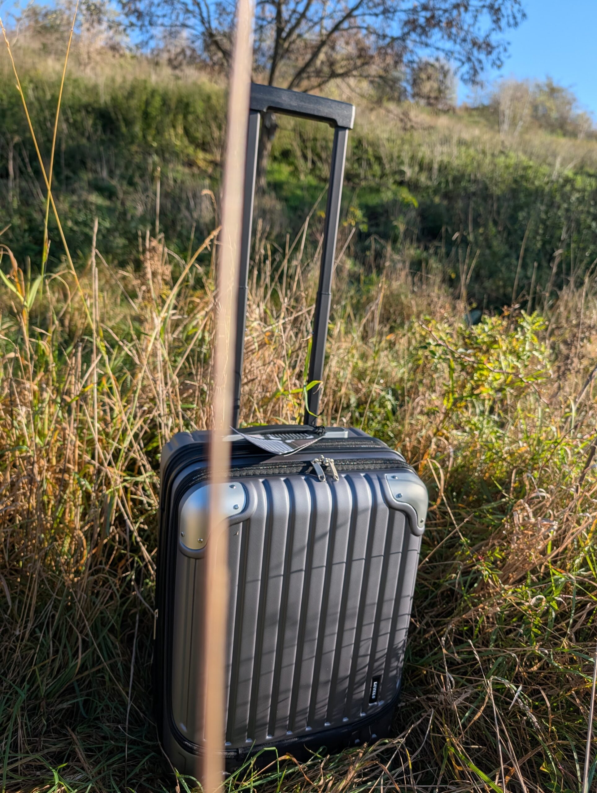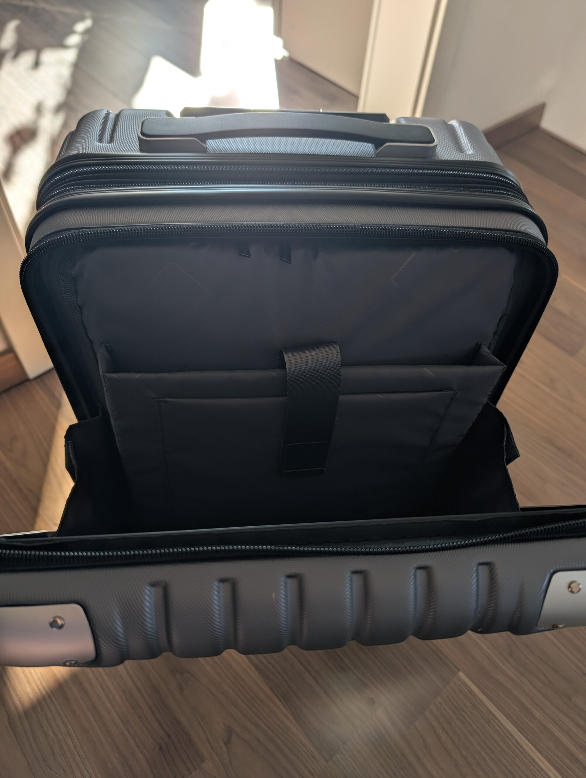 Selbst in der Bahn, in einer engen Zweiersitzreihe kann ich bequem alles herausnehmen und zurücklegen, als wäre es ein Rucksack. Genau diesen spare ich mir durch das Fach und bin viel freier unterwegs und eben nur mit einem Gepäckstück. Davon war ich schnell begeistert.