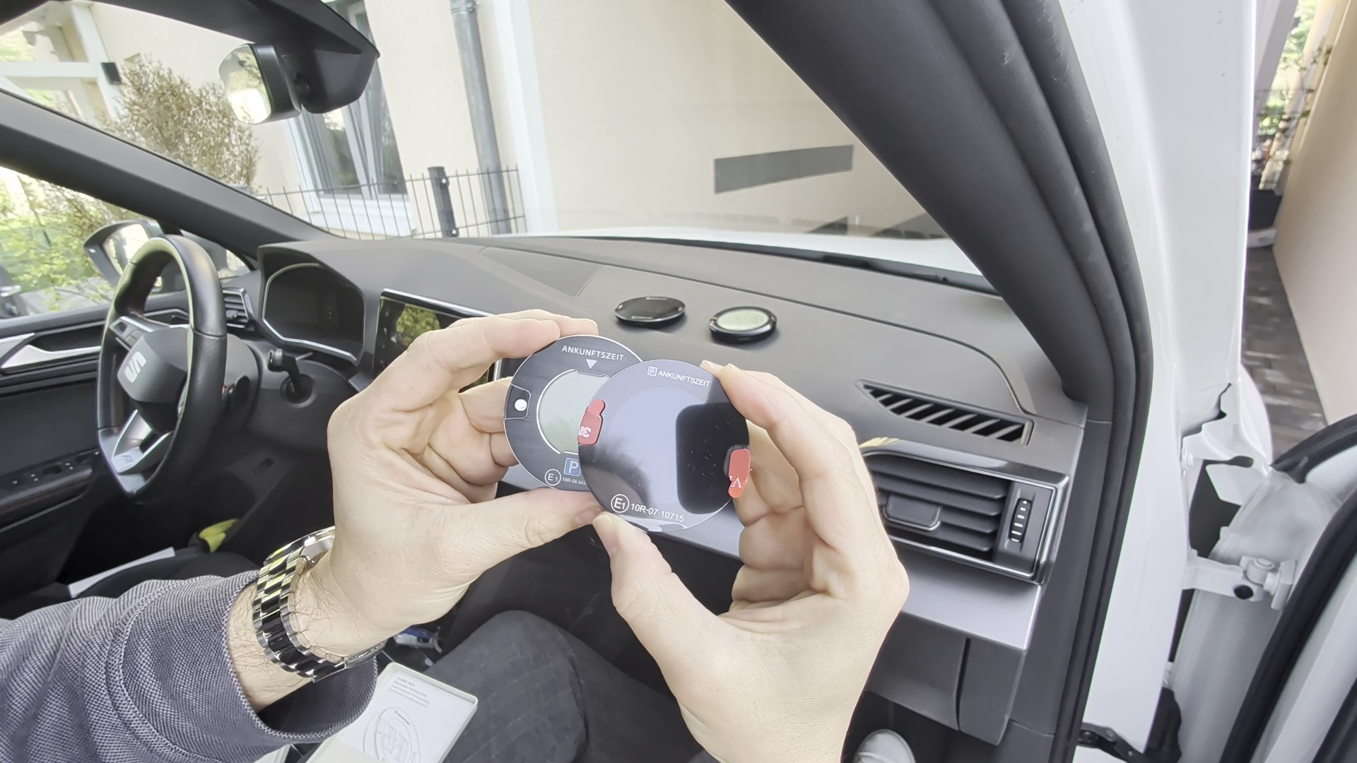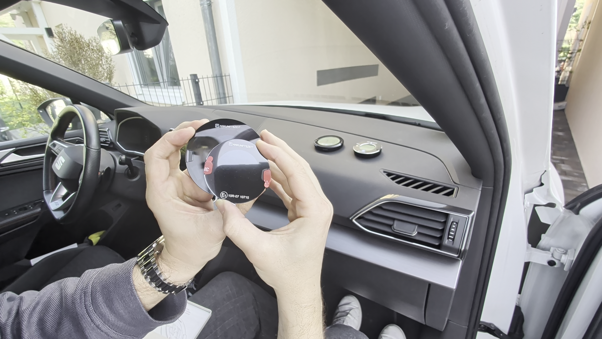 - Einfache Montage: Mit Magnet-Pads wird die Parkscheibe an der Windschutzscheibe befestigt und kann zum Batteriewechsel oder zur manuellen Einstellung leicht abgenommen werden.
