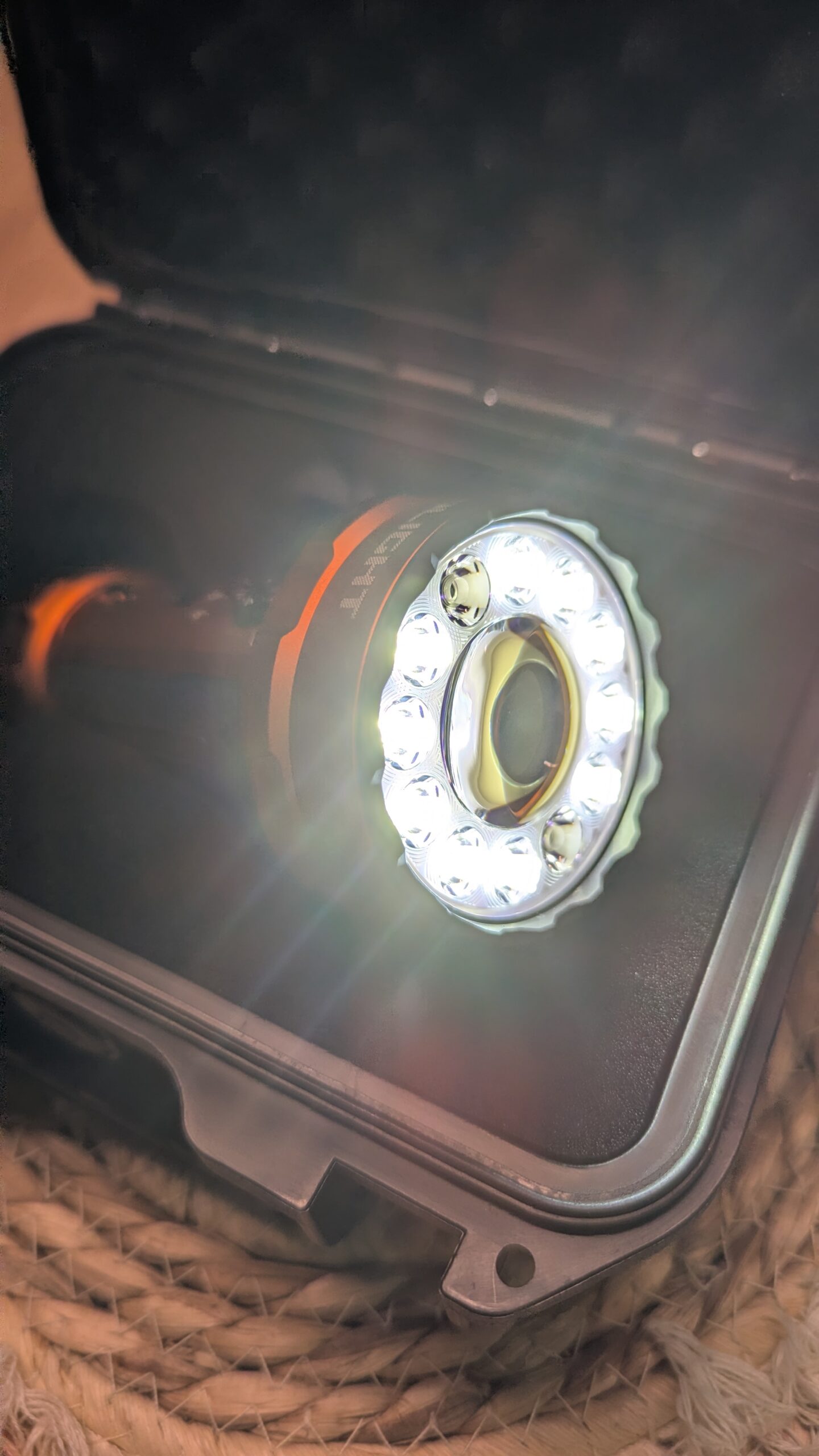 Auch das Seitenlicht überzeugt auf ganzer Linie: ideal, um ein Zelt oder einen Arbeitsbereich auszuleuchten – oder einfach einen Raum, wenn man die Lampe erhöht platziert. Auf einem Tisch sorgt sie für angenehmes, sparsames Licht, perfekt zum Essen oder Arbeiten. Genau diese Vielseitigkeit macht die Marauder Mini 2 für mich so besonders.