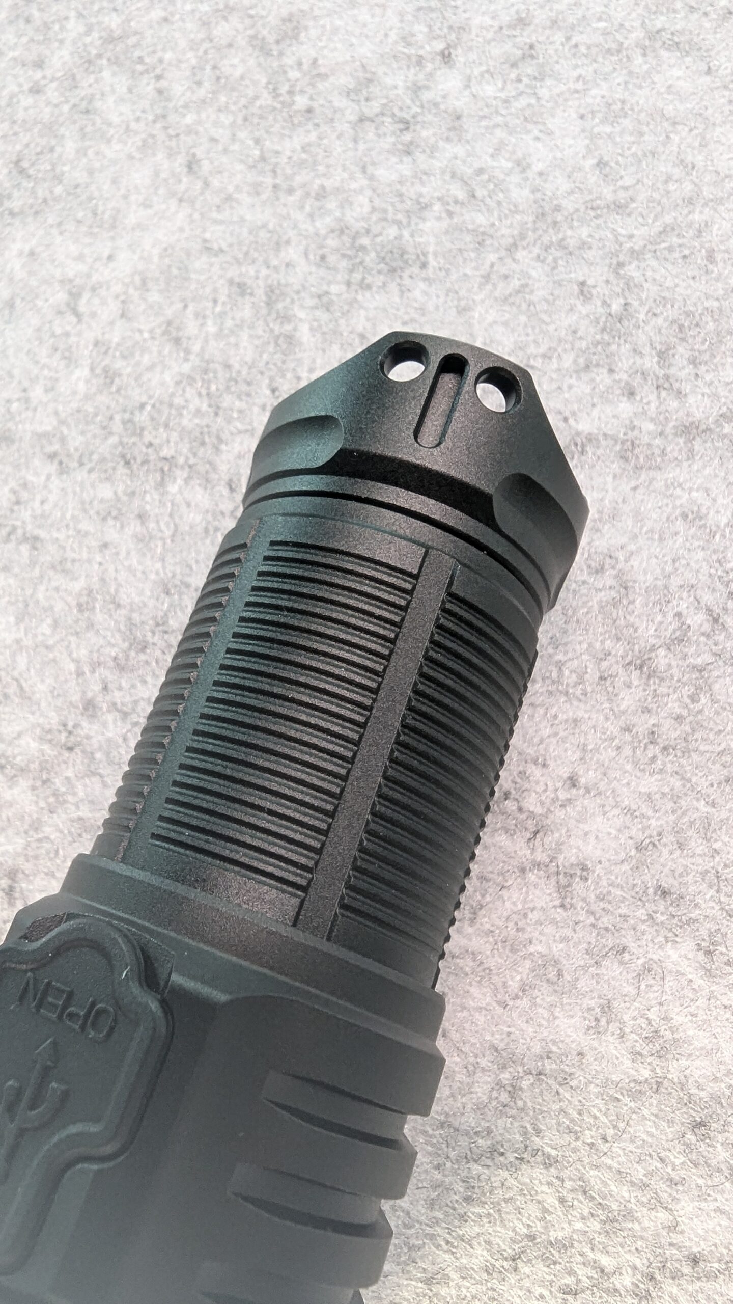 Die Linsenfassung ist leicht gezackt; das ist ein rein optisches Designelement und macht die Lampe nicht für defensive/taktische Einsätze geeignet.