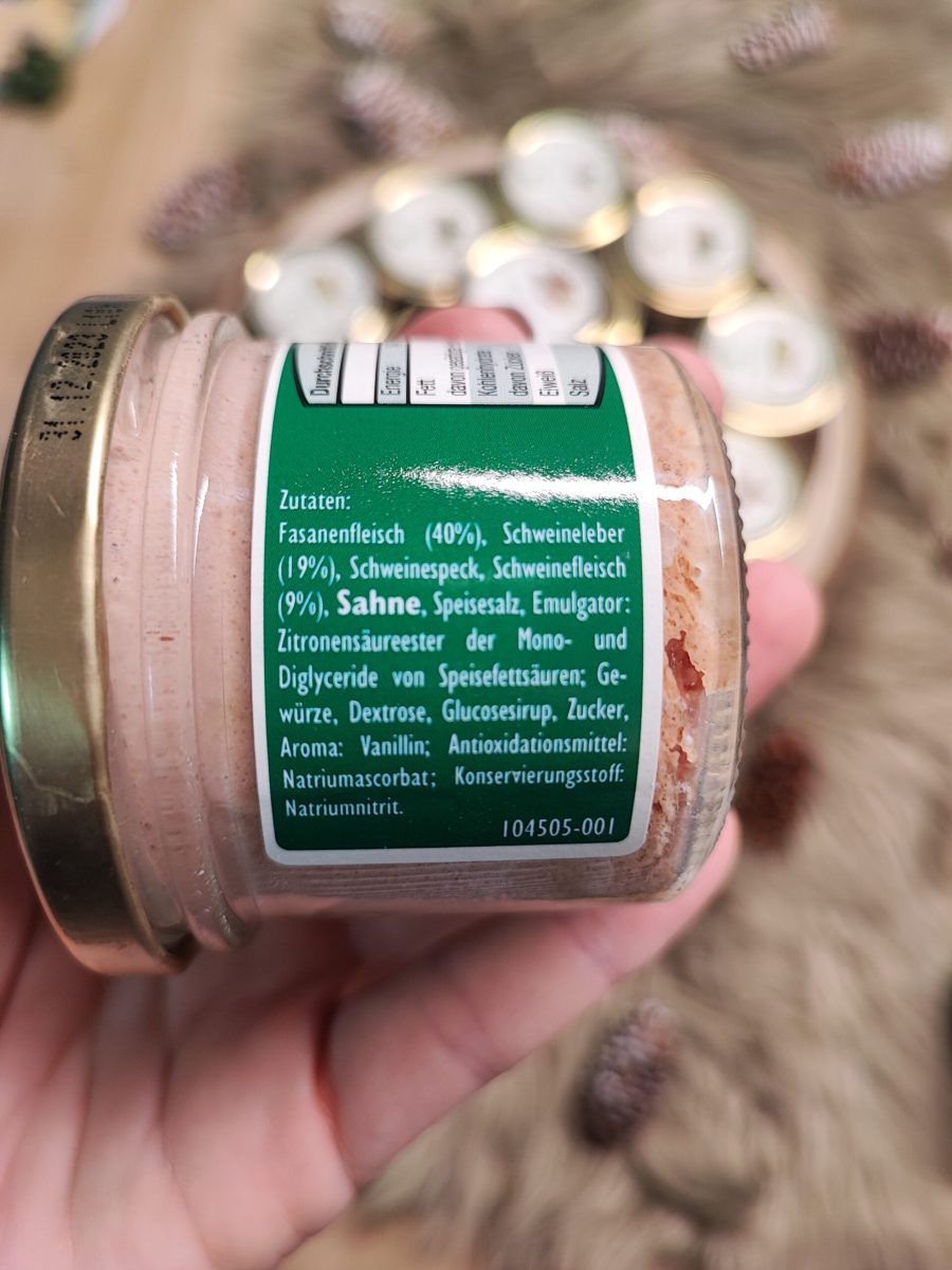 Dicht gefolgt wird die Heidschnucke von der Leberpastete Fasan, die eine andere Richtung einschlägt. Sehr fein in Geruch und Geschmack, wer Fasan kennt, der weiß genau, wo von ich spreche. Diese Wildspezialität ist eher was Feineres und auch für den Frühstückstisch perfekt geeignet.
