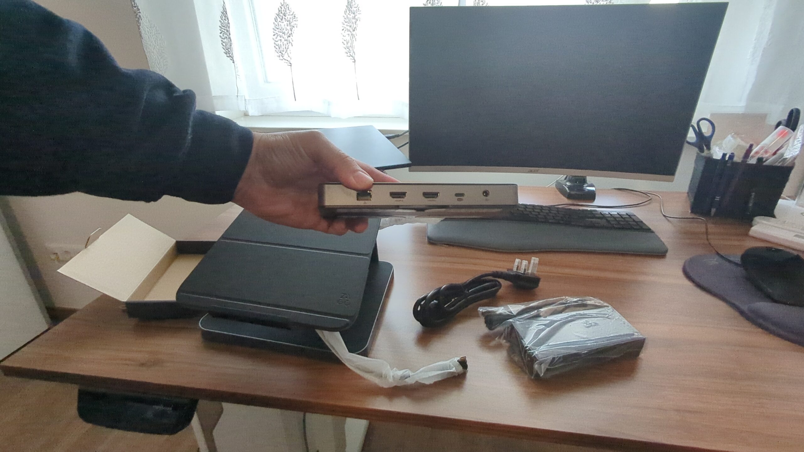 Der Aufbau des ZAGG Pro Dock ist schnell erledigt. Wer mag, kann anschließend alle Kabel ordentlich verstauen – ich habe dafür ein Fach unter dem Schreibtisch genutzt und war so in wenigen Minuten fertig. Auf dem Tisch wirkt der Dock deutlich kompakter und hochwertiger, als ich zunächst erwartet hatte.